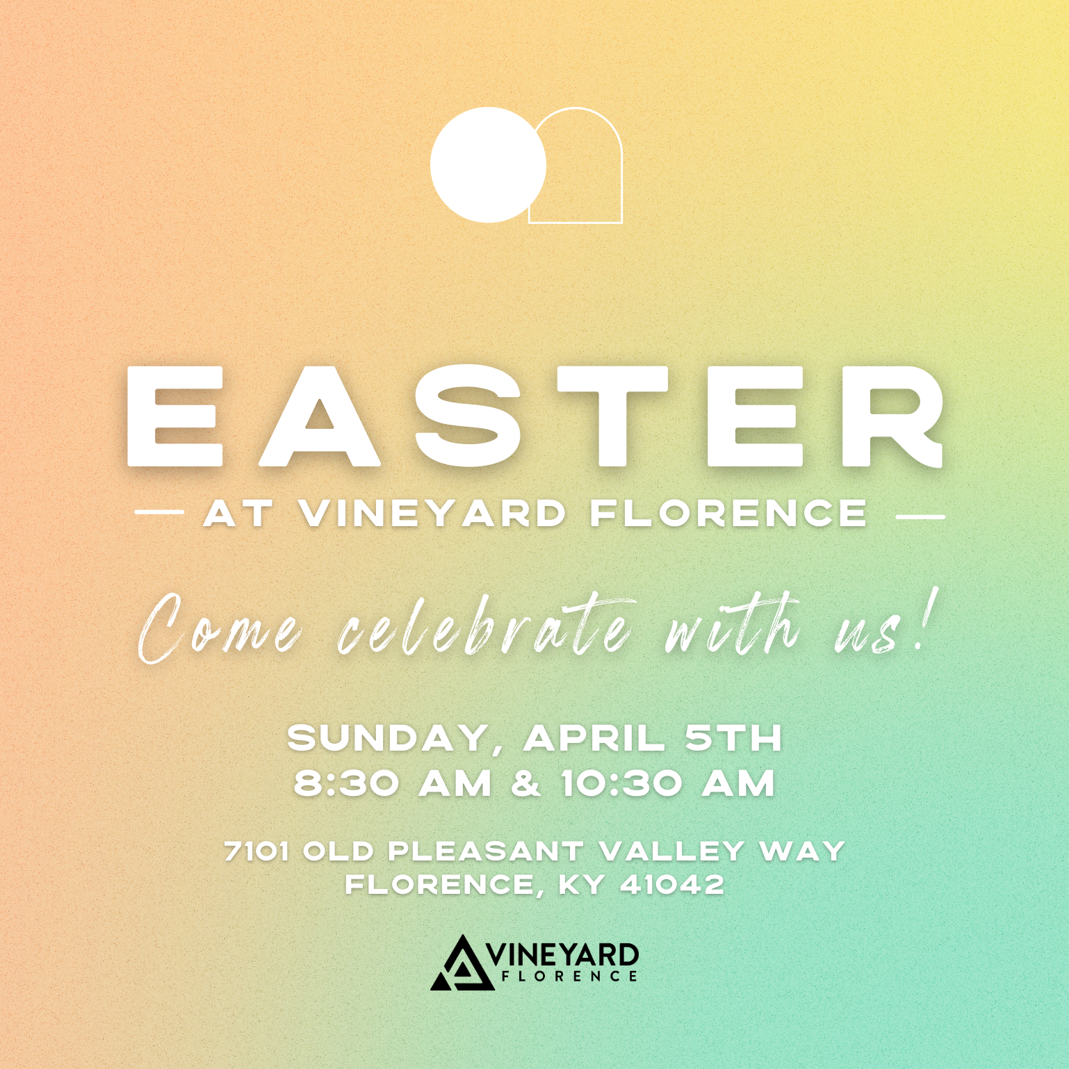 Celebrate Easter with us at Vineyard Florence! Join us for two identical services on Sunday, April 5th at 8:30am and 10:30am, as we come together to rejoice in the hope and renewal of this special season. After each service, kids are invited to hop into the excitement with our Easter Egg Hunt! We can't wait to celebrate with you!